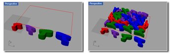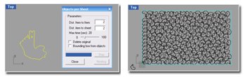 - Nach der Auswahl des Objekts und der Formvorlage errechnet RhinoNest automatisch die entsprechende Anzahl an Objekten, die die Vorlage aufnehmen kann.