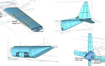 ... die Sie für die Kreation von kompliziert aufgebauten Oberflächenmodellen mit hohem Qualitätsanspruch benötigen, werden Ihnen am praktischen Beispiel einer vollständigen Flugzeug-Modellierung in Rhinoceros vermittelt.