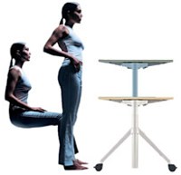 | | brodbeck design | | Auf Knopfdruck fährt die Arbeitsplatte von der Sitzposition in die ergonomisch richtige Stehhöhe |  |