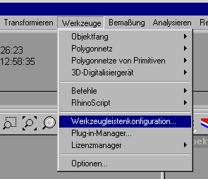 1. Öffnen Sie den Menüpunkt Werkzeuge/Werkzeugleistenkonfiguration...