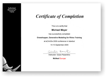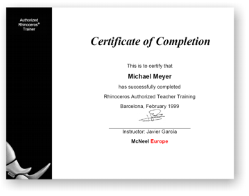 Wir wurden 1999, 2002, 2007, 2009 und 2010 vom Rhinoceros Hersteller Robert McNeel & Associates zertifiziert.